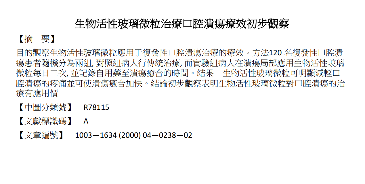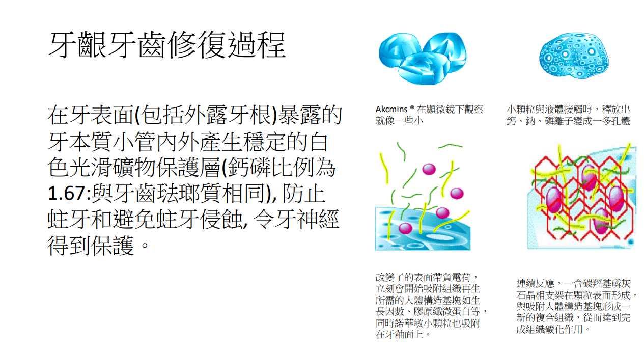 能夠同時對牙骨組織及軟組織產生良好的生物活性材料, 經過長期牙周疾病驗証, 得到相關國家的監督管理部門認可。